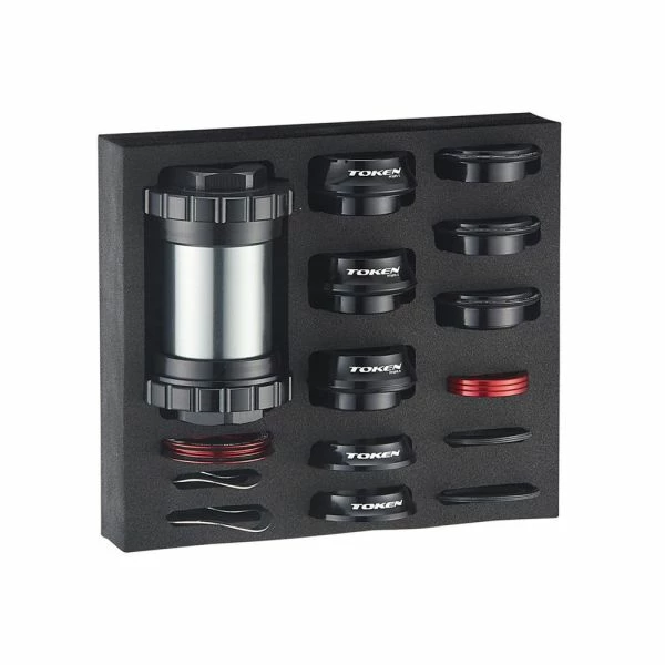 TOKEN Thread Fit Bottom Bracket Set TF37 Series – FUSION Composite Technology, en gennemtænkt kombination af plast, fibre og aluminium – Premium lejer – Monteringsværktøj medfølger.