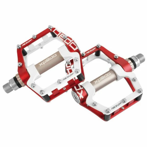 XPEDO MTB/platformspedal FACEOFF 18 MDU-elastomerer absorberer vibrationer under kørslen og beskytter leddene Aluminiumhus 6061 CNC CroMo aksel 1 x patron forseglet 40 udskiftelige stifter Vægt: ca. 408g 99 x 100 x 22mm Opmærksomhed: Brug kun med fuld beskyttelse af benene – ellers risiko for skader